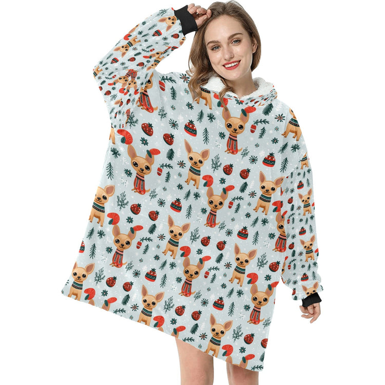 Fawn / Gold Chihuahua Yuletide Joy Christmas Blanket Hoodie