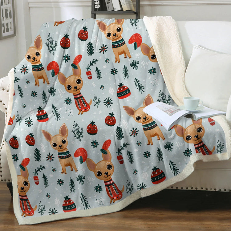 Fawn / Gold Chihuahua Yuletide Joy Christmas Blanket