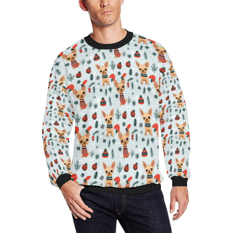 Celebrate the holidays with our Fawn/Gold Chihuahua Yuletide Joy Christmas Fuzzy Sweatshirt for Men!