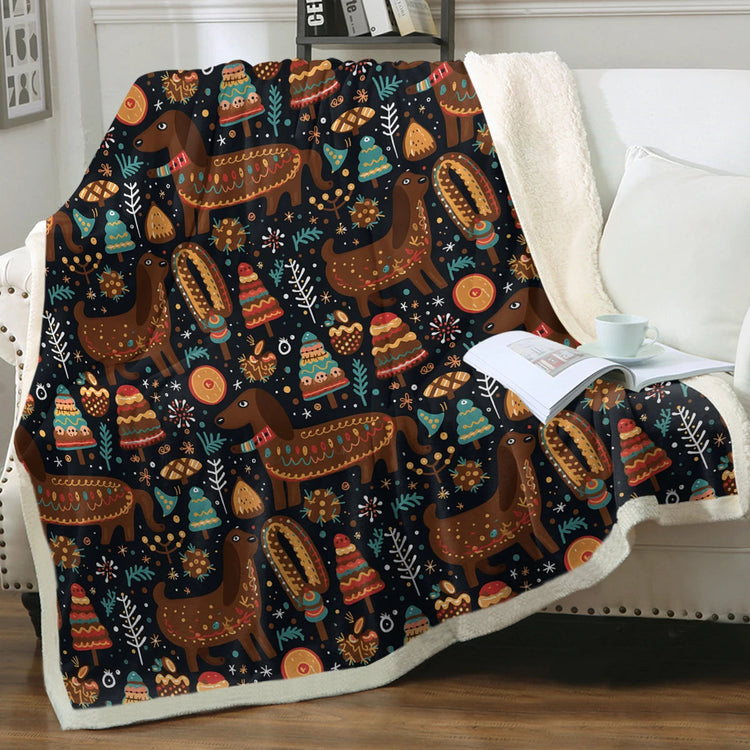 Festive Chocolate Dachshund Delight Christmas Blanket