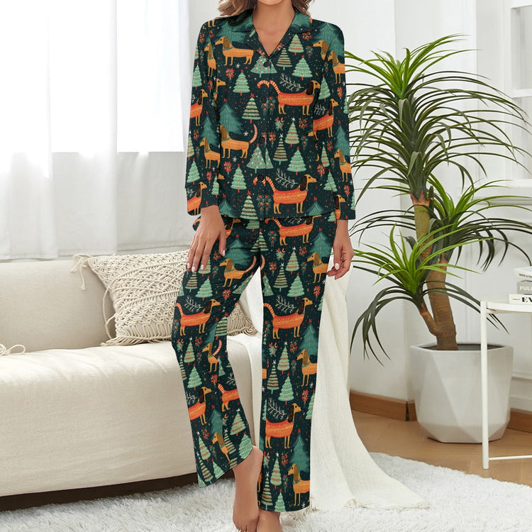 Festive Dachshund Wonderland Christmas Pajamas Set for Women