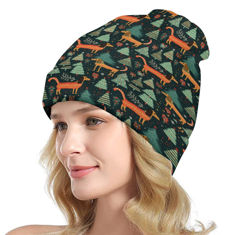 Festive Dachshund Wonderland Warm Christmas Beanie