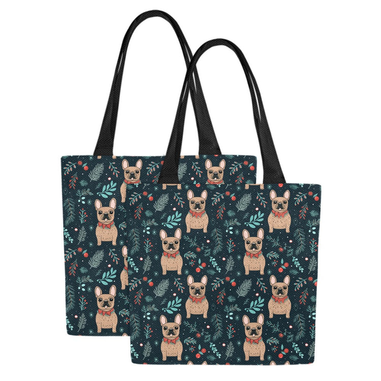 Embrace the holiday cheer with our Festive Fawn French Bulldog Forest Large Canvas Tote Bags, a delightful set of two, perfect for spreading festive joy.