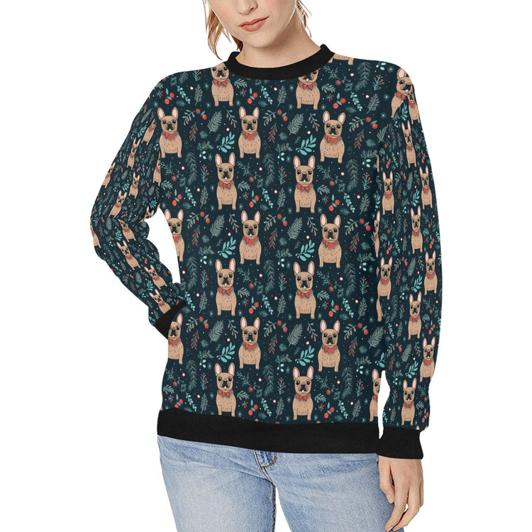 Festive Fawn French Bulldog Forest Christmas Sweatshirt for Women