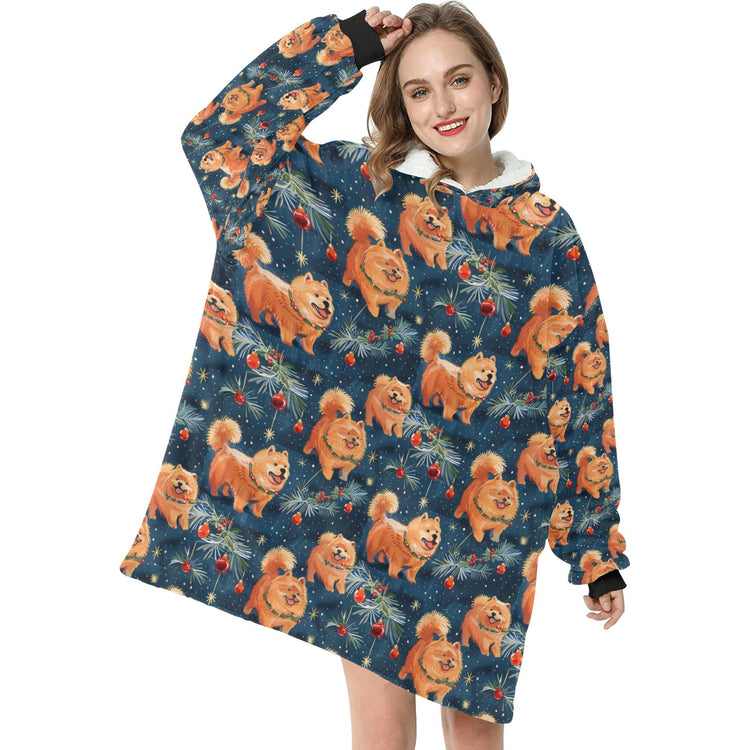 Festive Fluff Chow Chow Christmas Blanket Hoodie