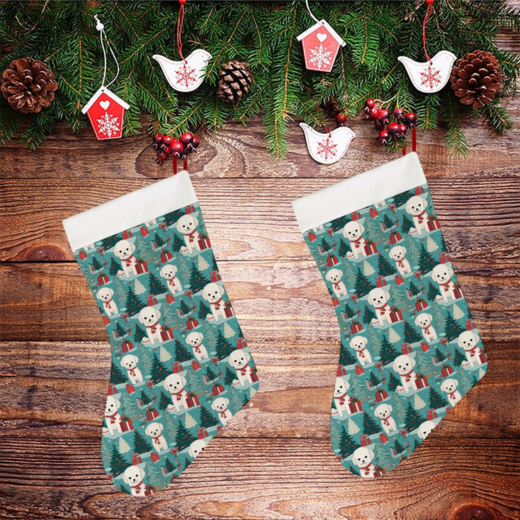 Celebrate the holidays with our Festive Furry Bichon Frise Christmas Stocking!