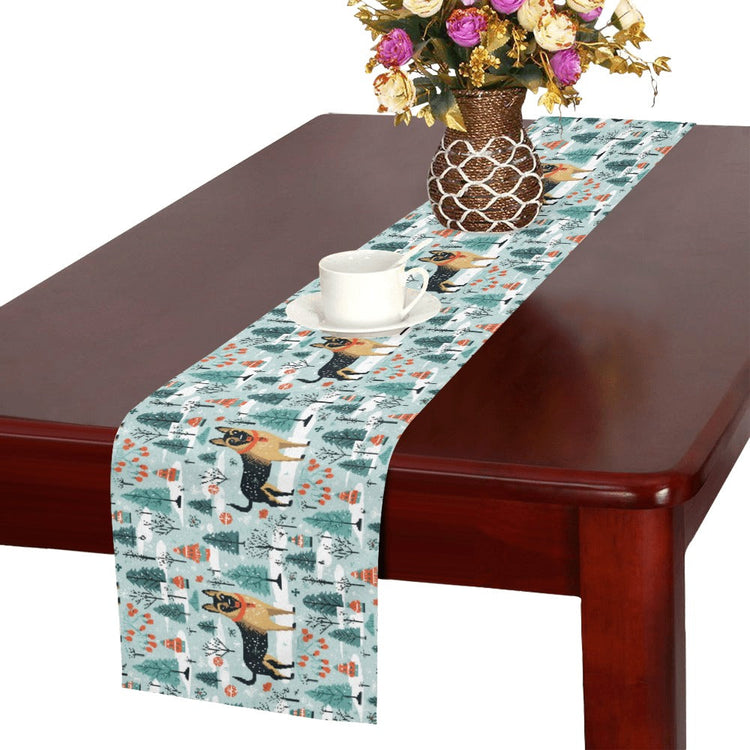 German Shepherd's Holiday Forest Frolic Christmas Decoration Table Runner
