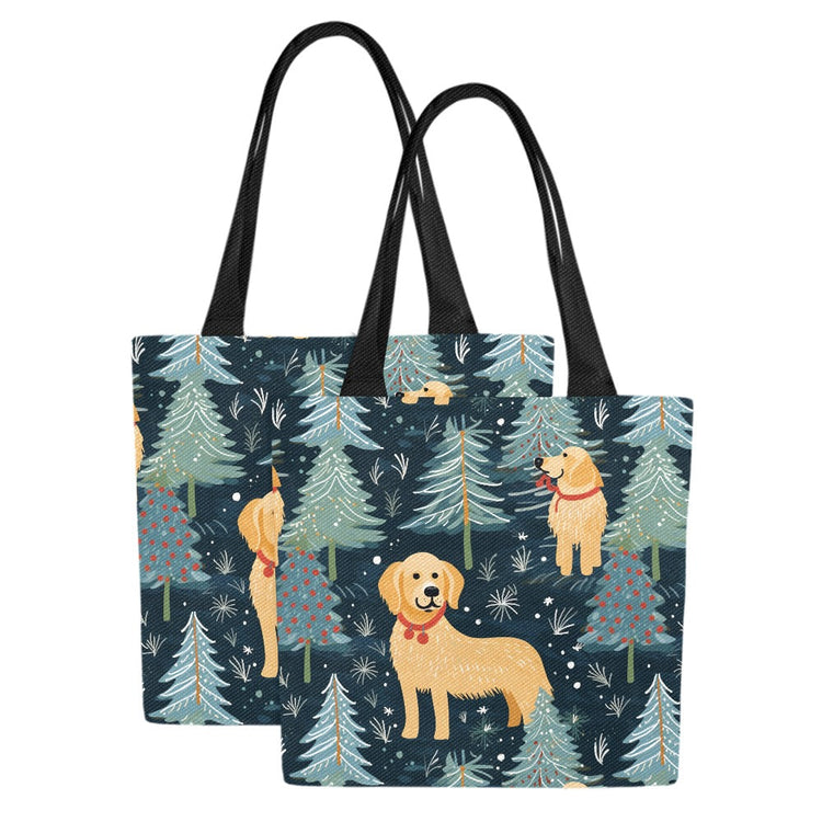 Golden Retriever Winter Forest Fest Large Christmas Tote Bags - Set of 2