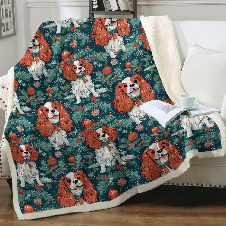 Holly Jolly Blenheim Cavalier King Charles Spaniels Christmas Blanket