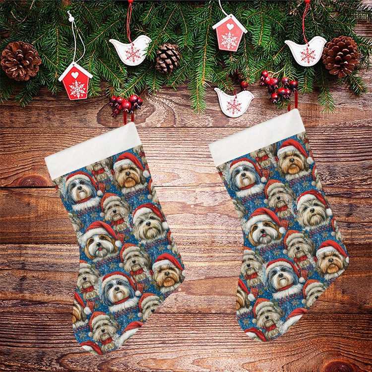 Holly Jolly Lhasa Apsos Christmas Stocking