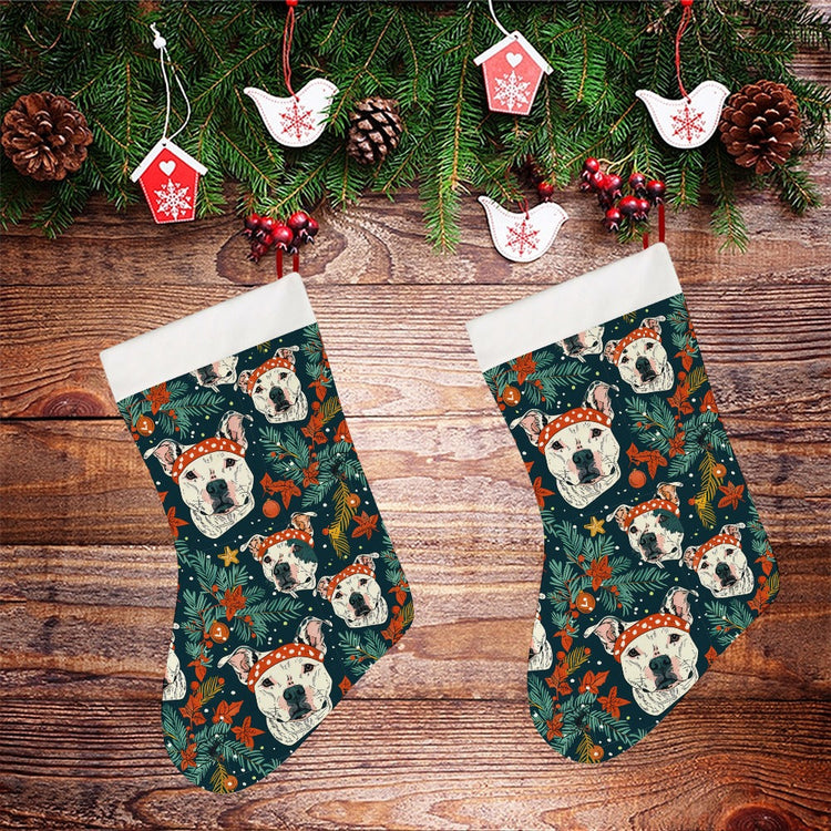 Celebrate the holidays with our Merry and Bright White Pit Bull Christmas Stocking!