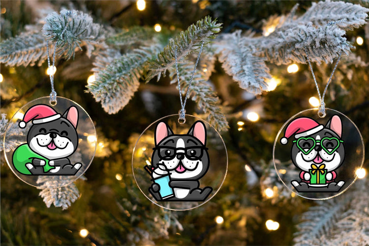 Merry Boston Terrier Christmas Tree Ornaments - 3 Designs Bundle