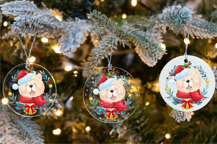 Measuring 3.5 inches in diameter, this Merry Chow Chow ornament is the perfect size to hang on your Christmas tree branches. Available in three background options; the transparent background option allows the natural beauty of your Christmas tree to shine through, creating a seamless and enchanting effect.