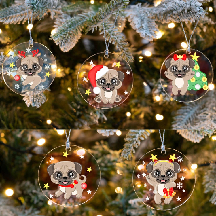 Merry Fawn Pug Christmas Tree Ornaments - 5 Designs Bundle