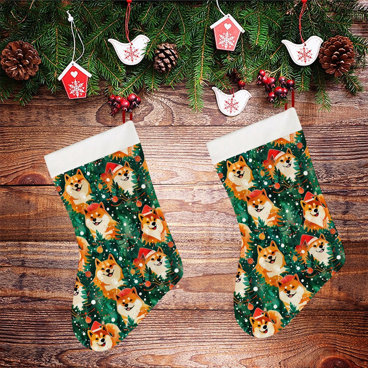 Celebrate the holidays with the Merry Shiba Merriment Christmas Stocking!