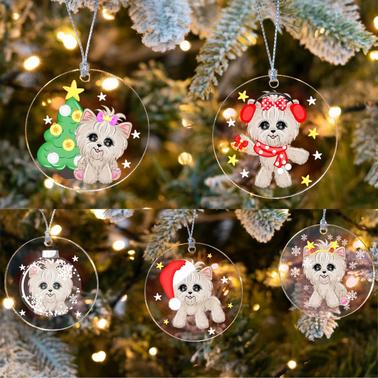 Merry Westie Christmas Tree Ornaments - 5 Designs Bundle
