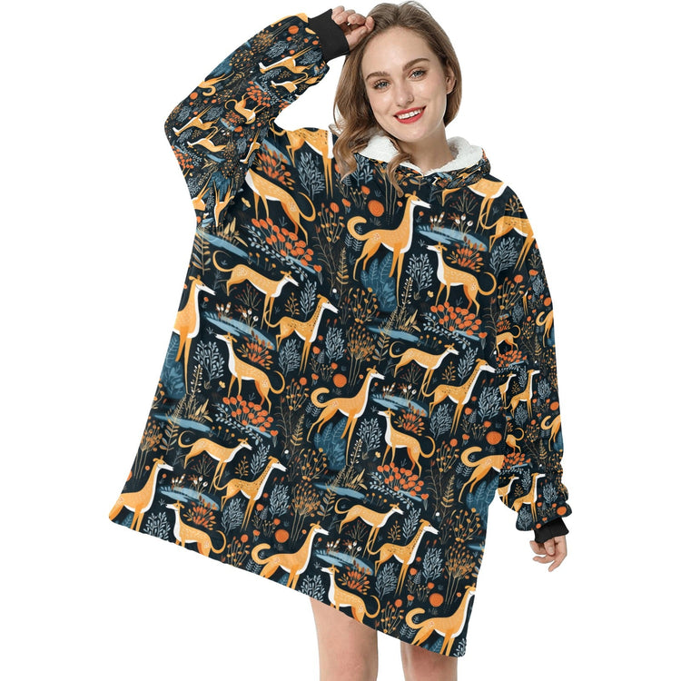 Midnight Garden Greyhound / Whippet Christmas Blanket Hoodie