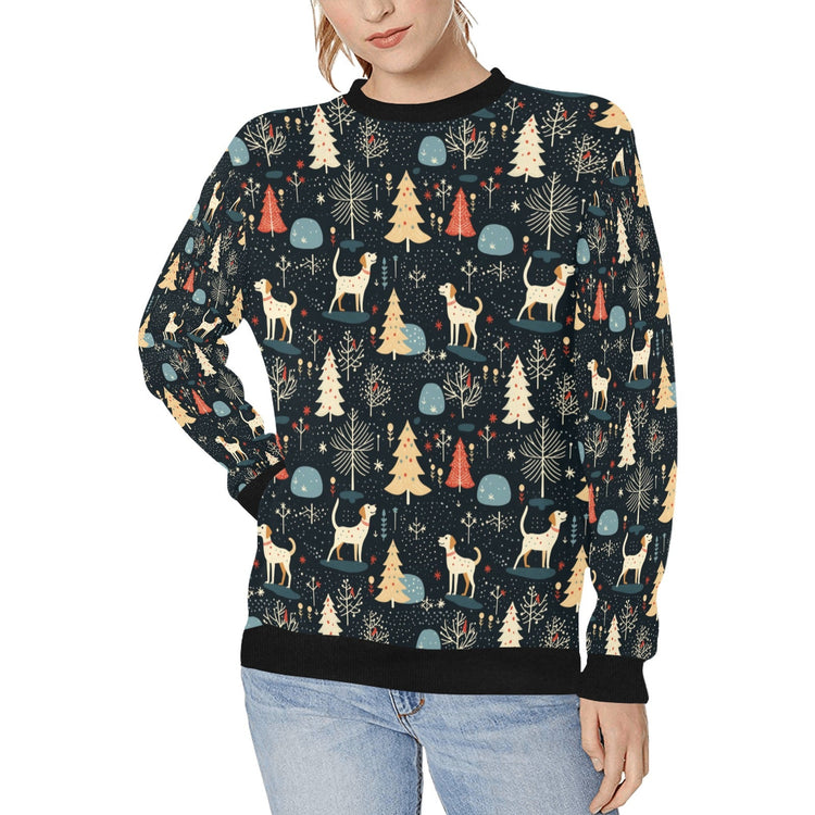 This sweatshirt captures the magic of a starlit winter night. Poised Labradors amidst holiday trees and snowflakes create a whimsical design.