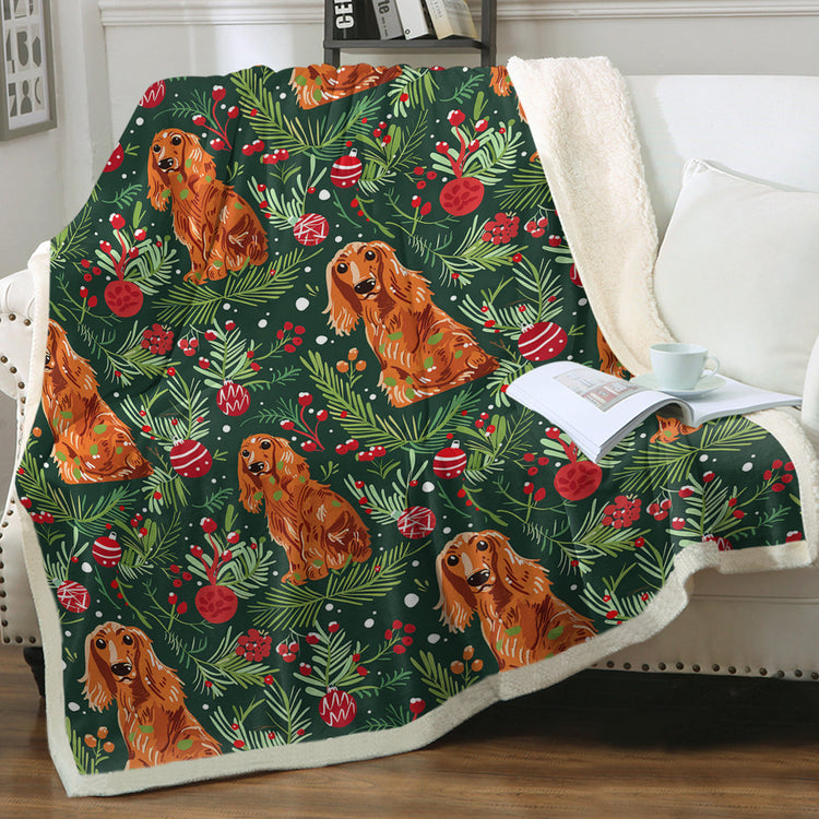 Mistletoe and Cocker Spaniels Christmas Ensemble Soft Warm Fleece Blanket
