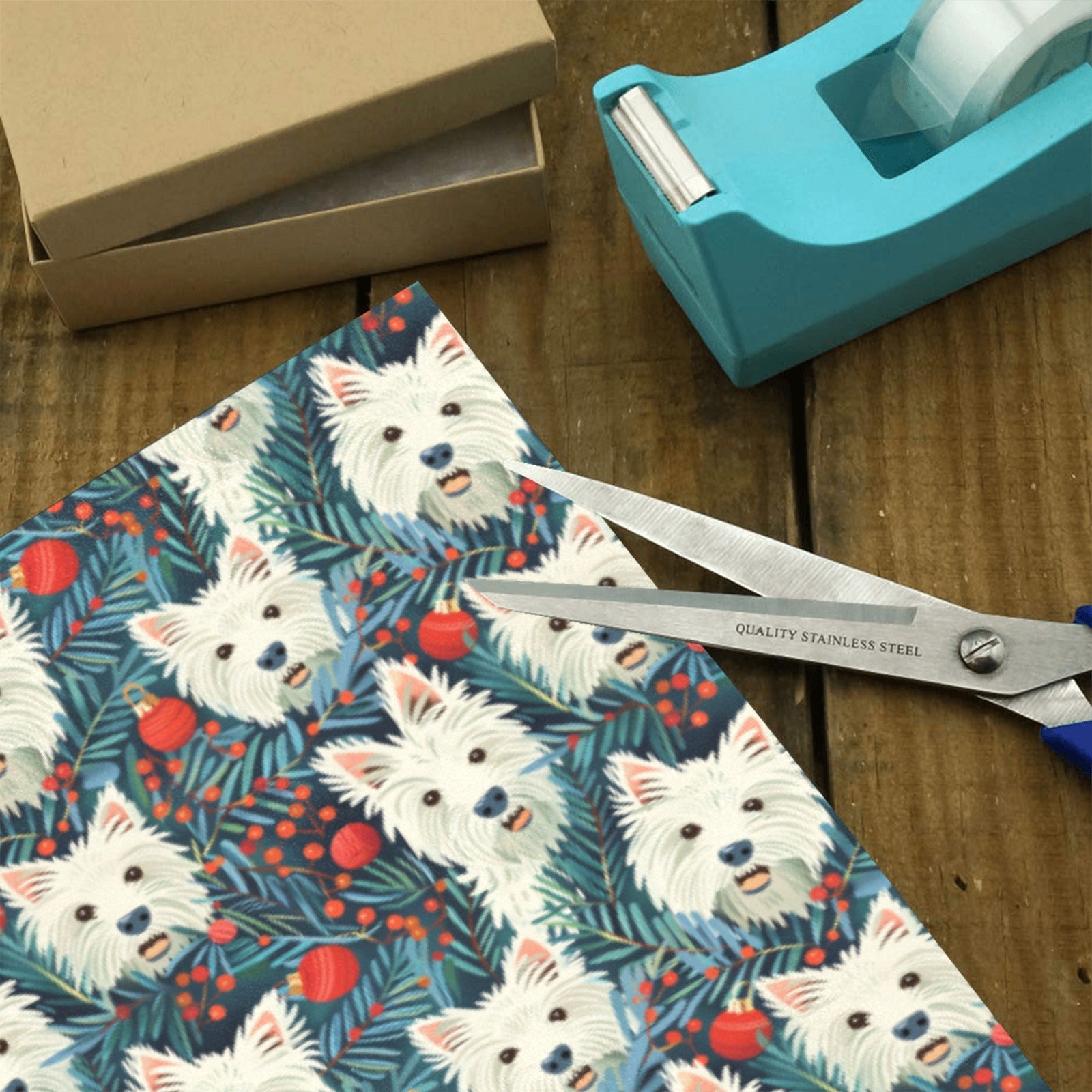 Each Westie’s inquisitive eyes and playful demeanor reflect the breed's cheerful disposition. This wrapping paper embodies the warmth of home during cold winter nights and the companionship of our beloved furry friends.
