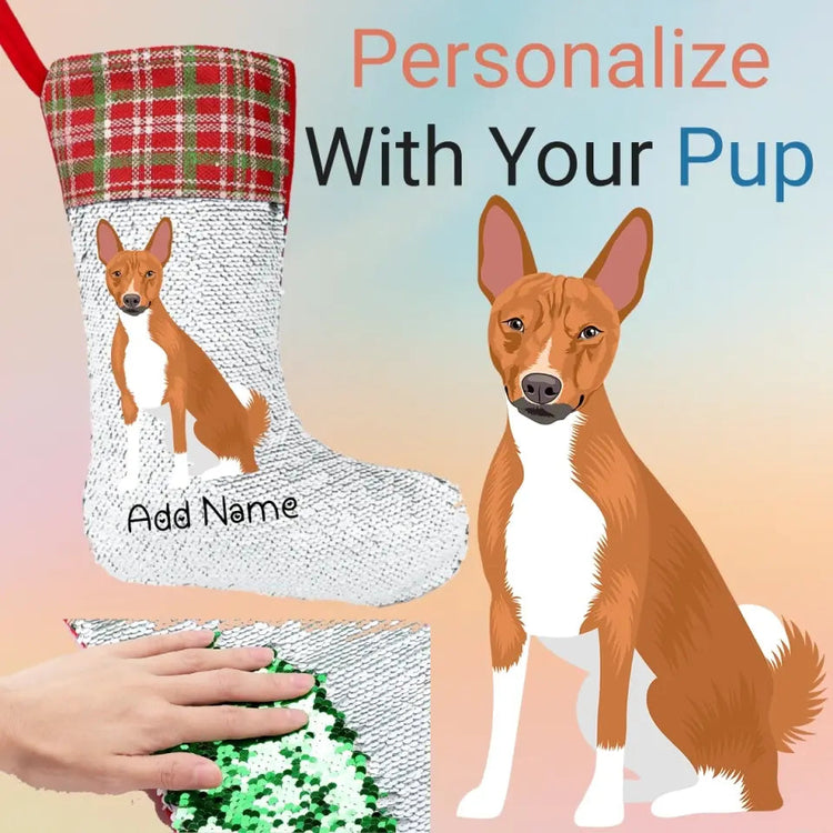 Personalized Basenji Shiny Sequin Christmas Stocking