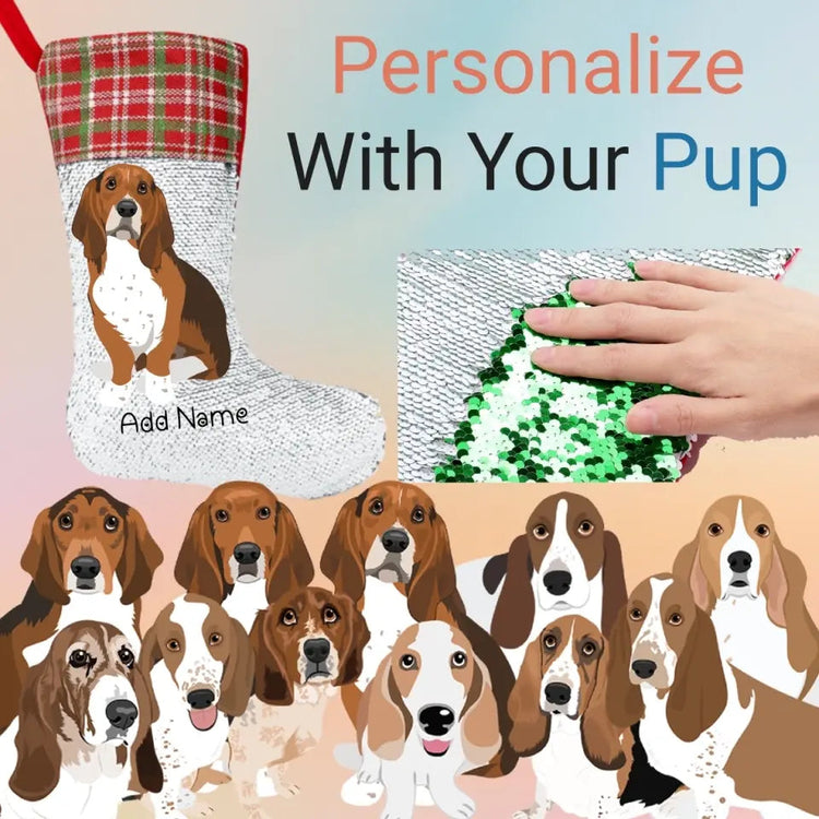 Personalized Basset Hound Shiny Sequin Christmas Stocking