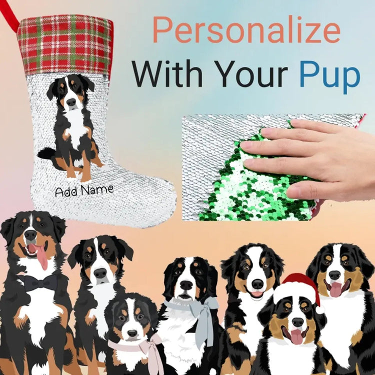 Personalized Bernese Mountain Dog Shiny Sequin Christmas Stocking