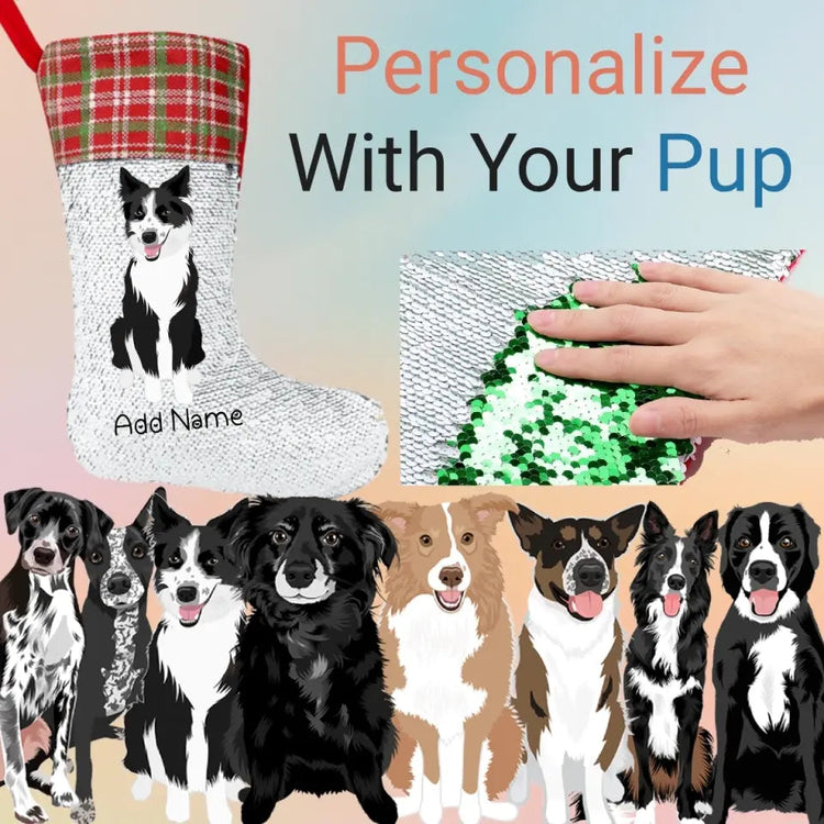 Personalized Border Collie Shiny Sequin Christmas Stocking