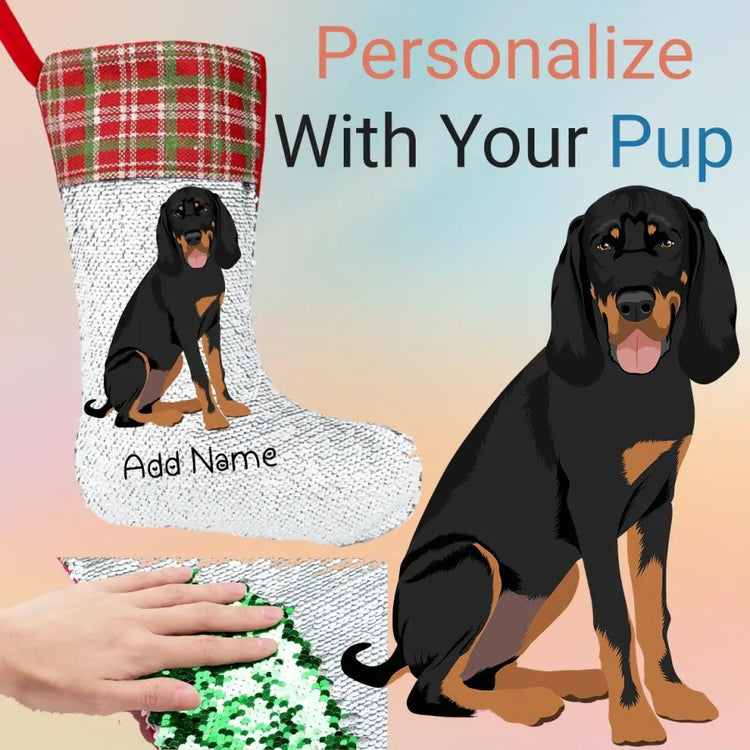 Personalized Coonhound Shiny Sequin Christmas Stocking