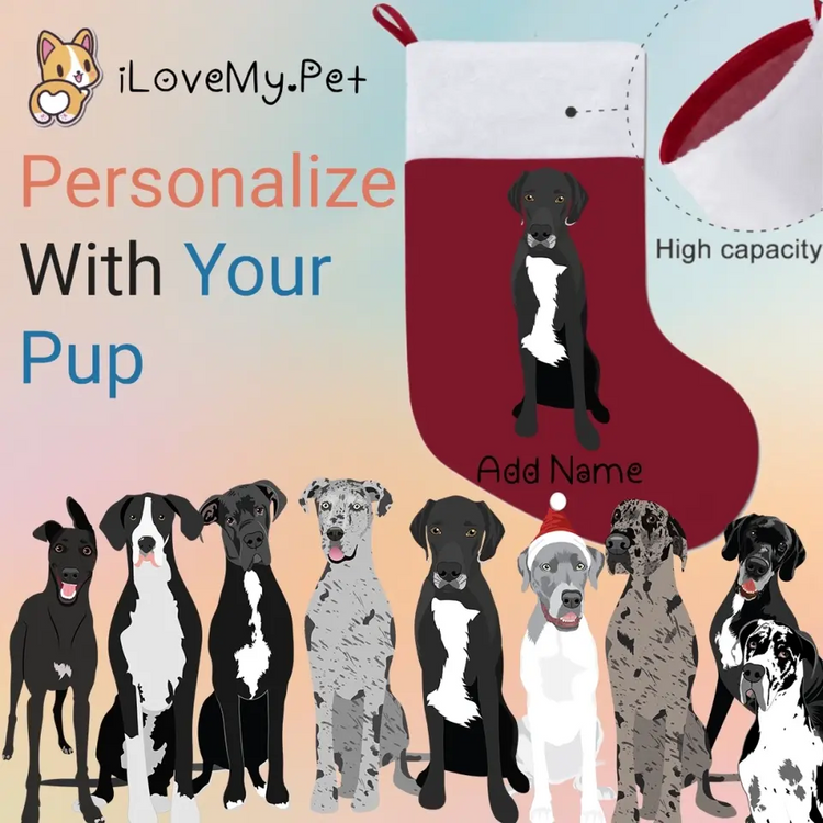 Gifts as loyal as your best friend, our Personalized Great Dane Large Christmas Stocking is the pawfect way to celebrate the holiday season with your beloved Great Dane. Customise with the coat color of your pup and personalize with their name, making it a unique and thoughtful gift for Great Dane lovers.