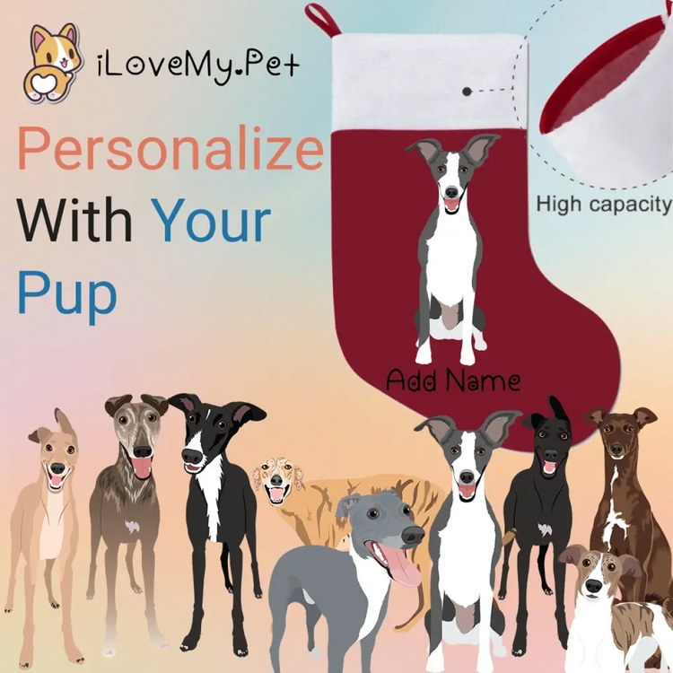 Personalized Greyhound / Whippet Large Christmas Stocking