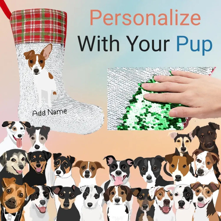 Personalized Jack Russell Terrier Shiny Sequin Christmas Stocking