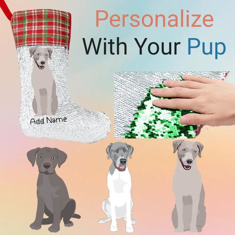 Personalized Silver Labrador Shiny Sequin Christmas Stocking