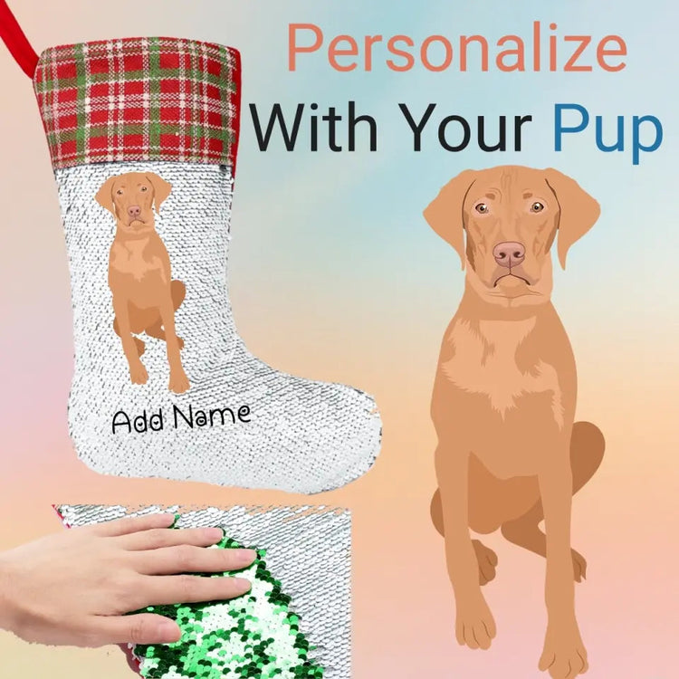 Personalized Vizsla Shiny Sequin Christmas Stocking.