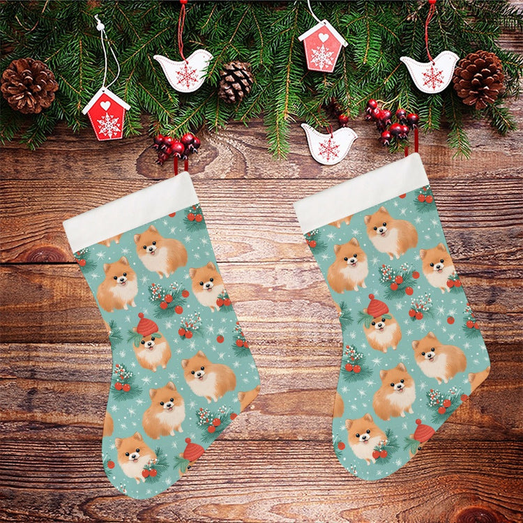 Celebrate the holidays with our Pom-Pom Christmas Holiday Cheer Christmas Stocking, a perfect gift for Pomeranian lovers.