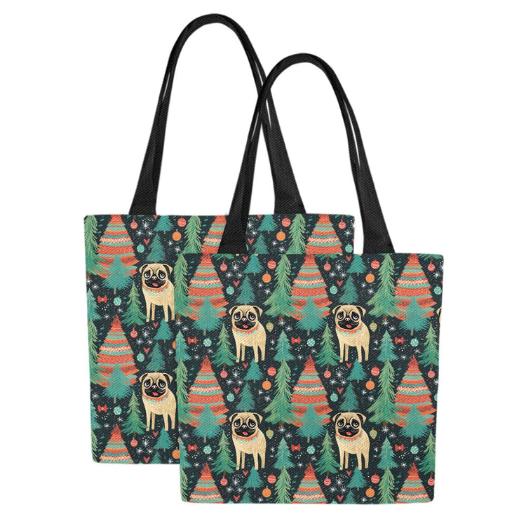 Pug Christmas Tree Delight Large Christmas Tote Bags - Set of 2
