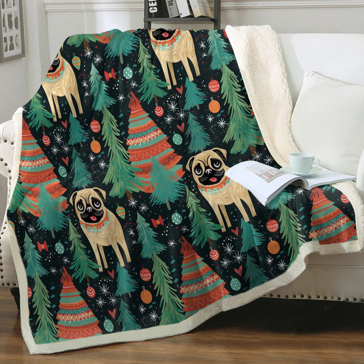 Embrace the joy of the holiday season with our Pug Christmas Tree Delight Christmas Blanket.