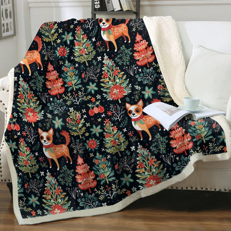Red / Fawn and White Chihuahua Christmas Botanical Blanket
