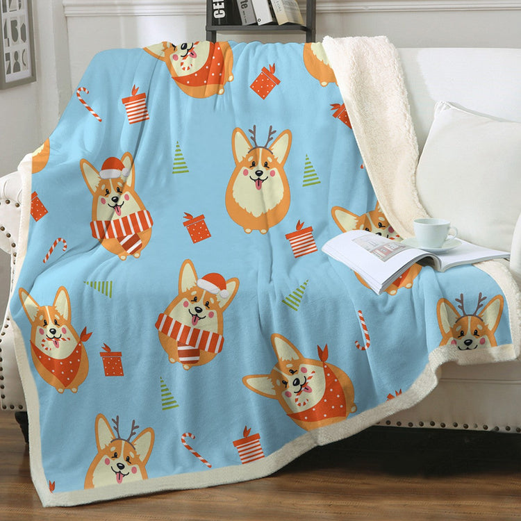 Rolly Polly Christmas Corgis Love Soft Warm Fleece Blanket - 4 Colors