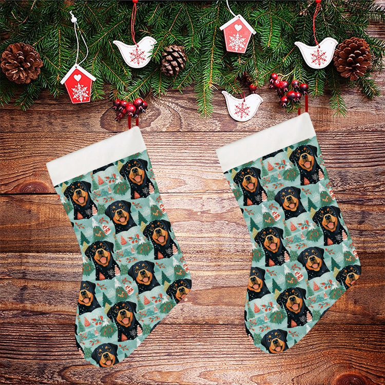 In the heart of a snowy paradise, Rottweilers gaze with childlike wonder, their faces emerging like cherished memories against a tapestry of winter's finest scenes. This stocking captures the infectious joy of the holiday season, with each dog adorned in festive colors that accent their loyal and affectionate nature.