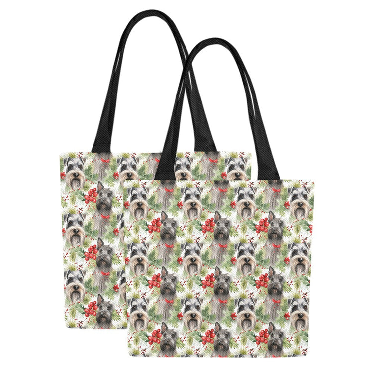Schnauzer Holly Jamboree Large Christmas Tote Bags - Set of 2