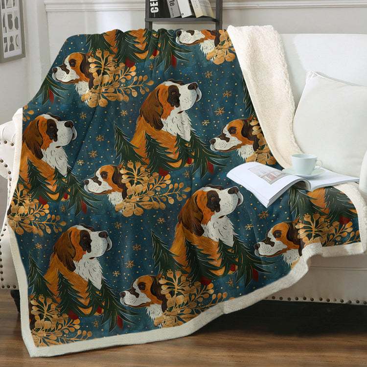 Snowflakes and Saint Bernards Christmas Symphony Warm Fleece Blanket