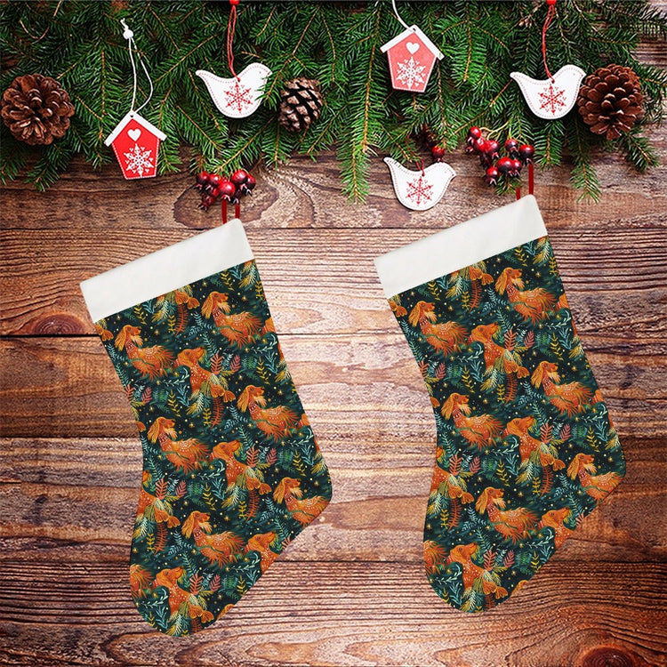 This Starry Night Irish Setter's Christmas Stocking is a masterpiece for dog enthusiasts. The richly hued depiction of Irish Setters under a star-speckled sky is enchanting.
