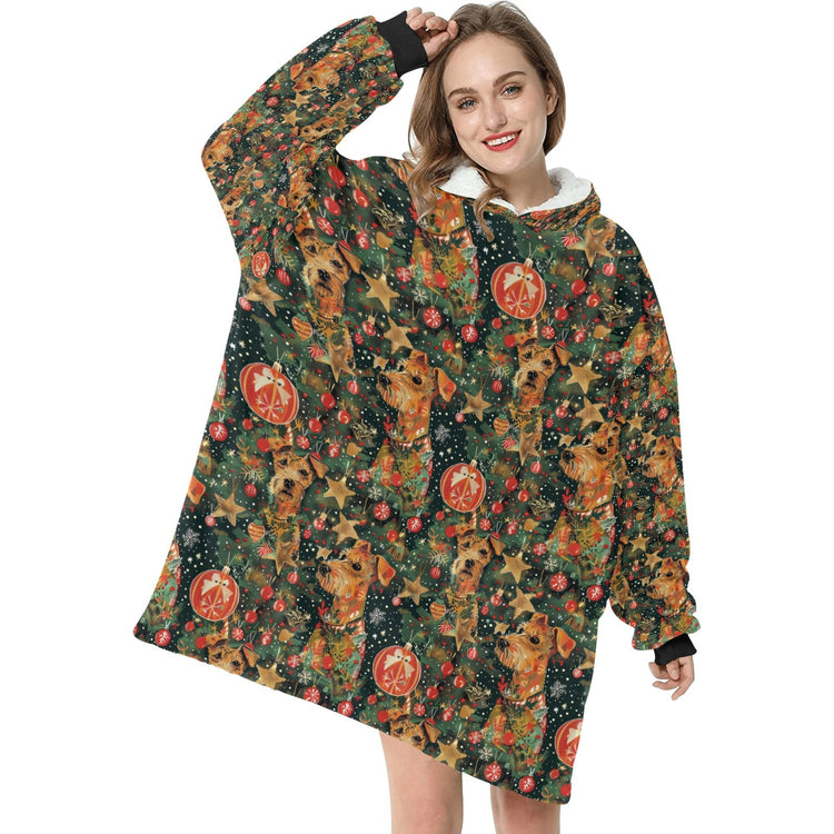 Tinsel and Airedale Terriers Christmas Blanket Hoodie