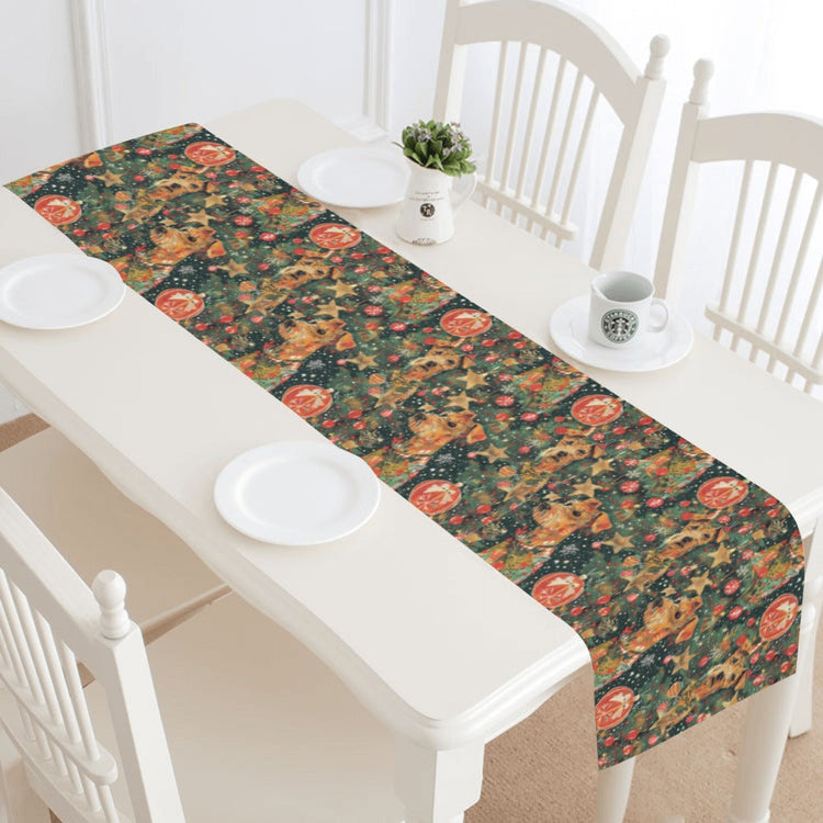 High-quality Airedale Terrier Gifts that Airedale Terrier lovers can enjoy and cherish for years to come. Designed to bring a smile to your face, this table runner is a heartfelt tribute to the holiday spirit and the companionship of pets who share in our festive celebrations.