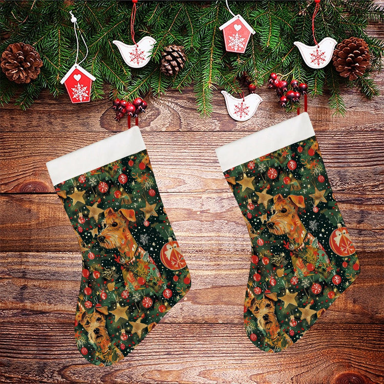 With a touch of whimsy, the design plays with scale and perspective, suggesting a magical world where holiday joy is boundless. This Airedale Terrier Christmas Stocking is a tribute to the holiday spirit and the companionship of pets who share in our celebrations.