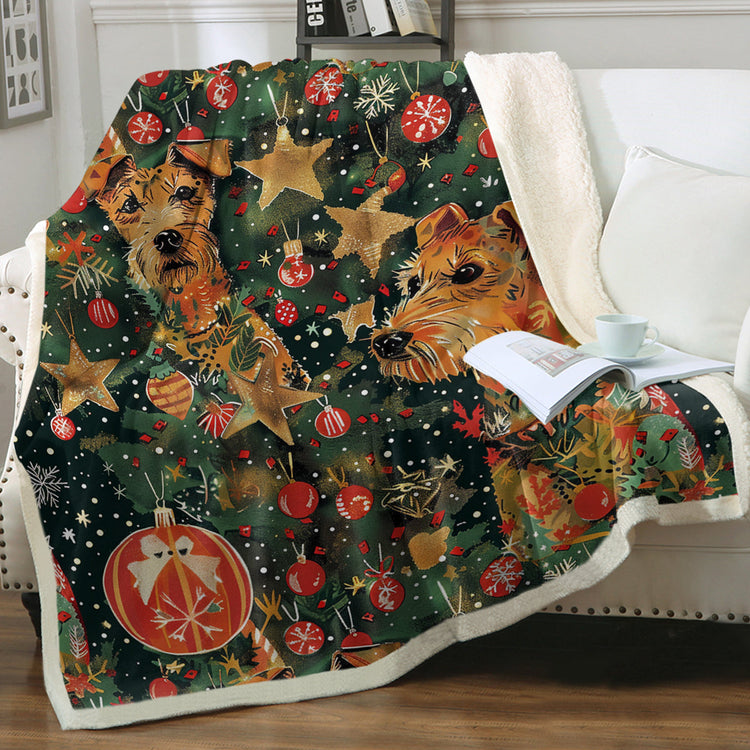 Tinsel and Airedale Terriers Soft Warm Christmas Blanket