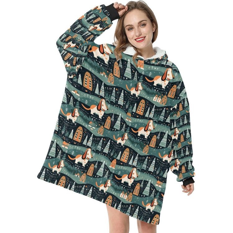 Winter Village Basset Hounds Christmas Blanket Hoodie
