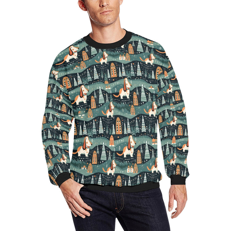 Winter Village Basset Hounds Christmas Fuzzy Sweatshirt for Men