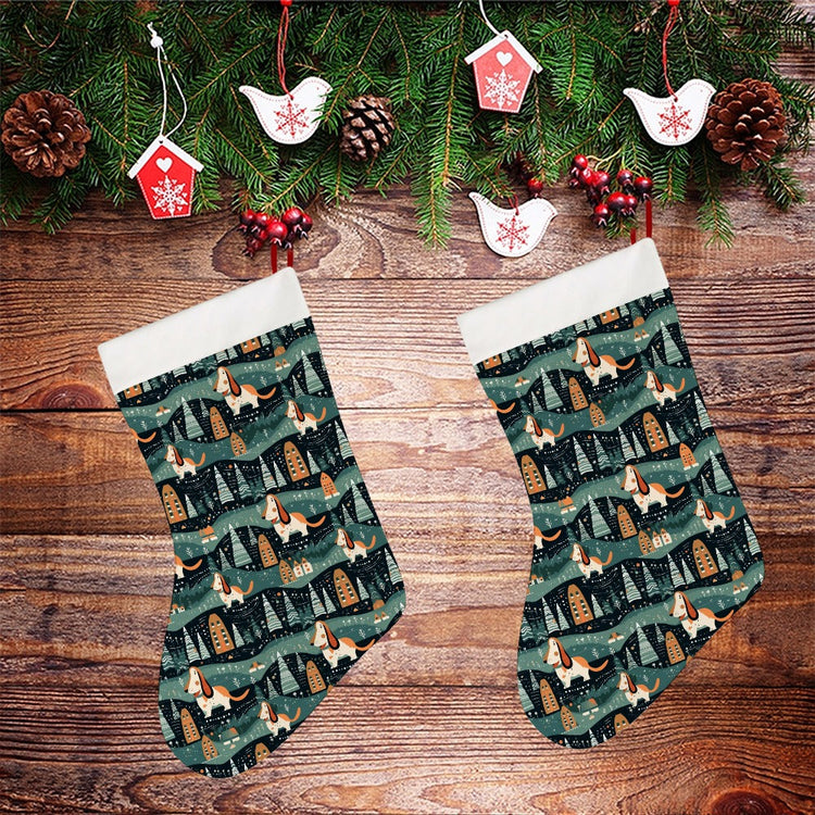 Winter Village Basset Hounds Christmas Stocking